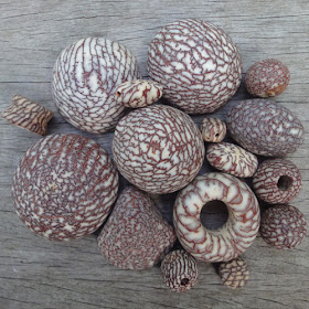 The photo above shows two varieties of cocoon. The bright yellow colour of the cocoon on the right is totally natural, but yields less fibre than the white cocoon. Each cocoon is made from one long continuous fibre, the white producing between 1000 to 1500 metres and the yellow only producing around 600 metres.